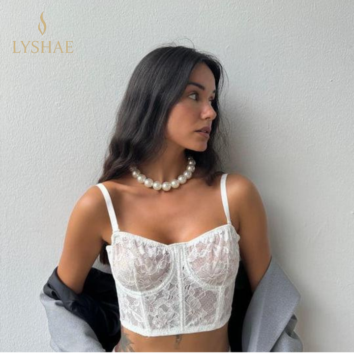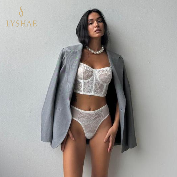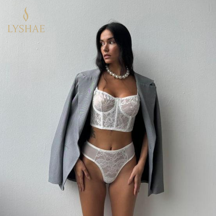 Lyshae Beyaz Dantel Korse Bralet Takımı, zarafeti ve feminen şıklığı en üst seviyeye taşır. Beyaz dantel bralet, modern korse yapısı ve konforlu tasarımıyla hem günlük kullanımda hem de özel anlarda seni öne çıkarır. İnce işlenmiş dantel detaylarıyla sofistike ve premium bir stil sunar.
