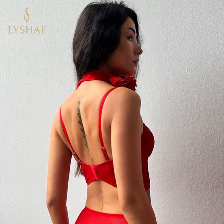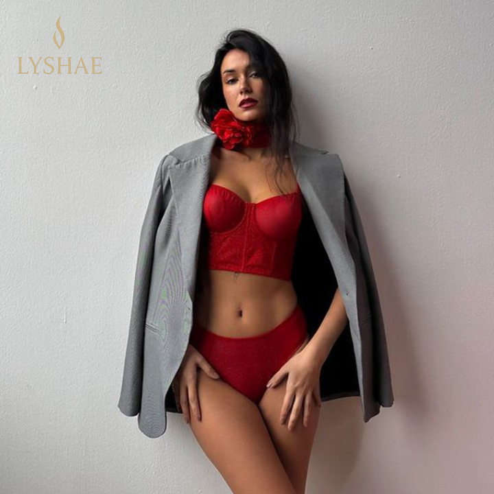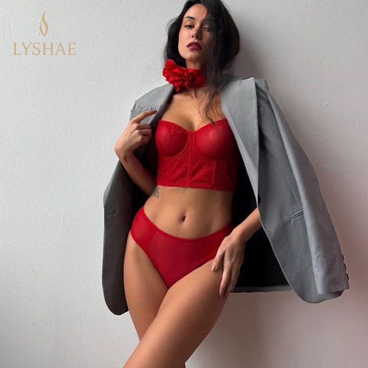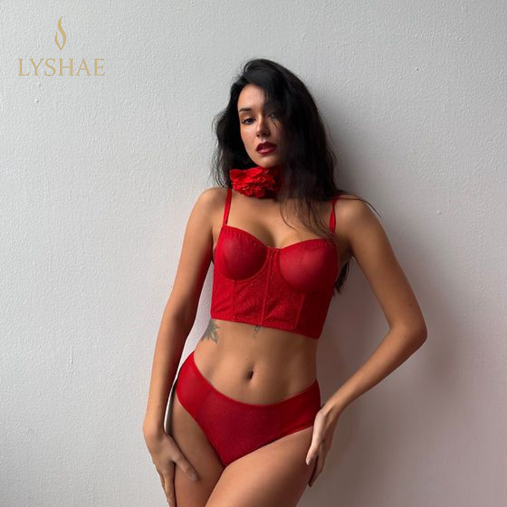 Lyshae Premium Kırmızı Dantel Korse Bralet Takımı, Lyshae Kırmızı Dantel Bralet ve Külot Seti, Kırmızı Dantel Korse Sütyen Takımı, Lyshae Kırmızı Bralet Set, Premium Kırmızı Dantel Korse Bralet İç Giyim, Kırmızı Bralet ve Yüksek Bel Külot