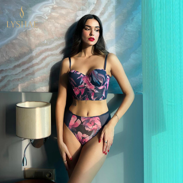 🌸 Çiçek Desenli Destekli Bustier & Slip Takım – Zarif, Feminen ve Şık 🌸