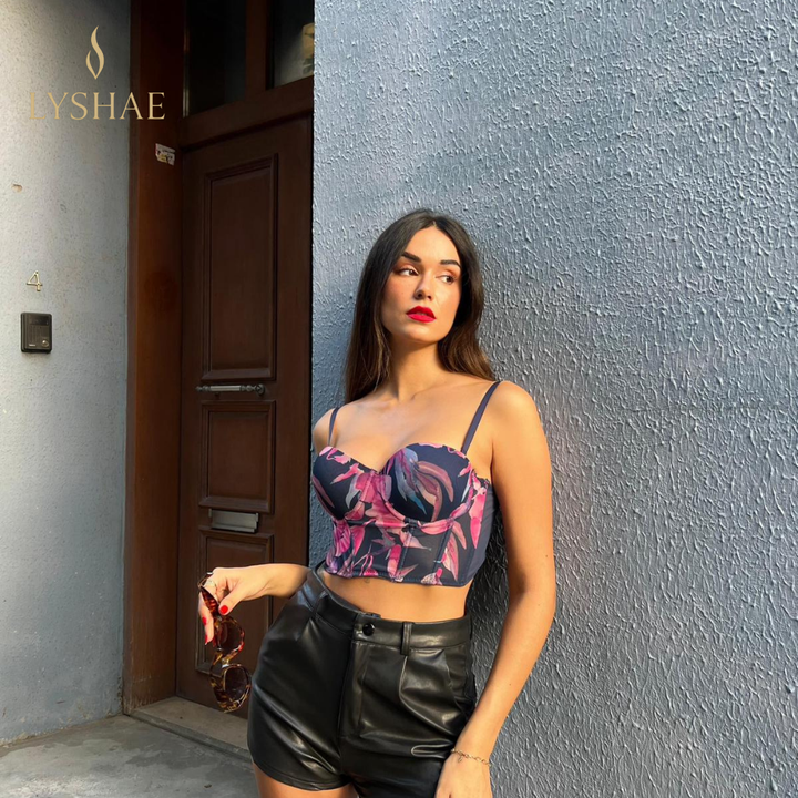 Üst Kısım (Bustier): Destekli yapısıyla göğüsleri toparlar ve daha estetik bir görünüm sunar. Çiçek desenli kumaşıyla hem günlük kombinlerde (etek, jean, ceket altı) hem de özel anlarda rahatlıkla kullanılabilir.