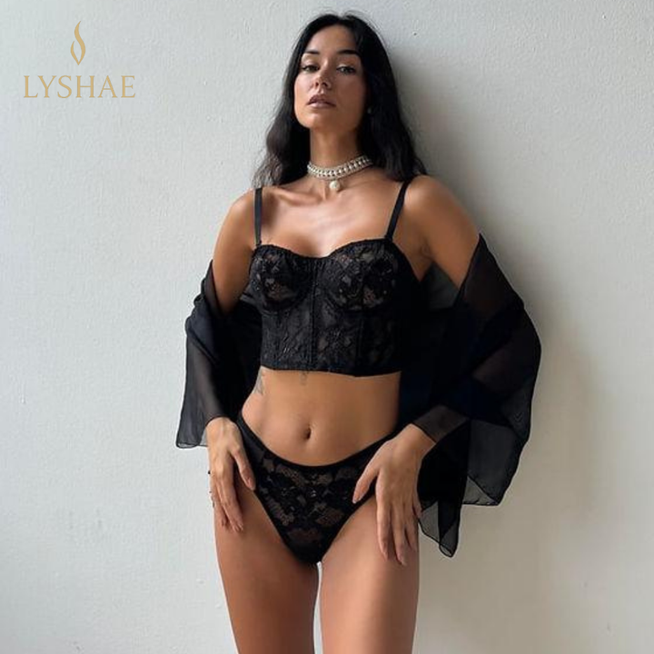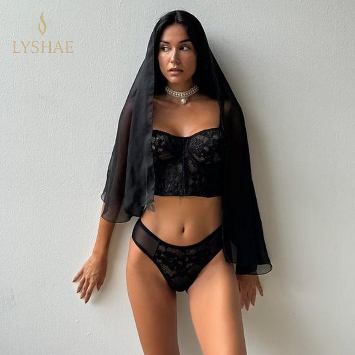 Lyshae’nin özel tasarımı Siyah Dantel Korse Bralet Takımı, feminen zarafeti modern bir şıklıkla buluşturuyor. Kusursuz formu, ince dantel dokusu ve çarpıcı siyah tonuyla her an seni farklı kılar.